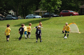 Lincoln wrapped up another successful soccer season this weekend. His team - the "Stompers" - were undefeated. This was his third season with the Stompers, and he's enjoying it more each time. Guy also really had fun getting out and about and playing with all the younger siblings (most of whom he goes to "school" with).